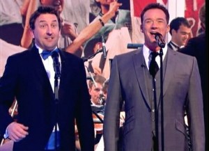We didn’t think Russell was supposed to be on until later in the series but we tuned in, just in case. He certainly wasn’t on the guest list BUT… in the final part of the show a large panel in the studio rose up to reveal Russell and a full orchestra!